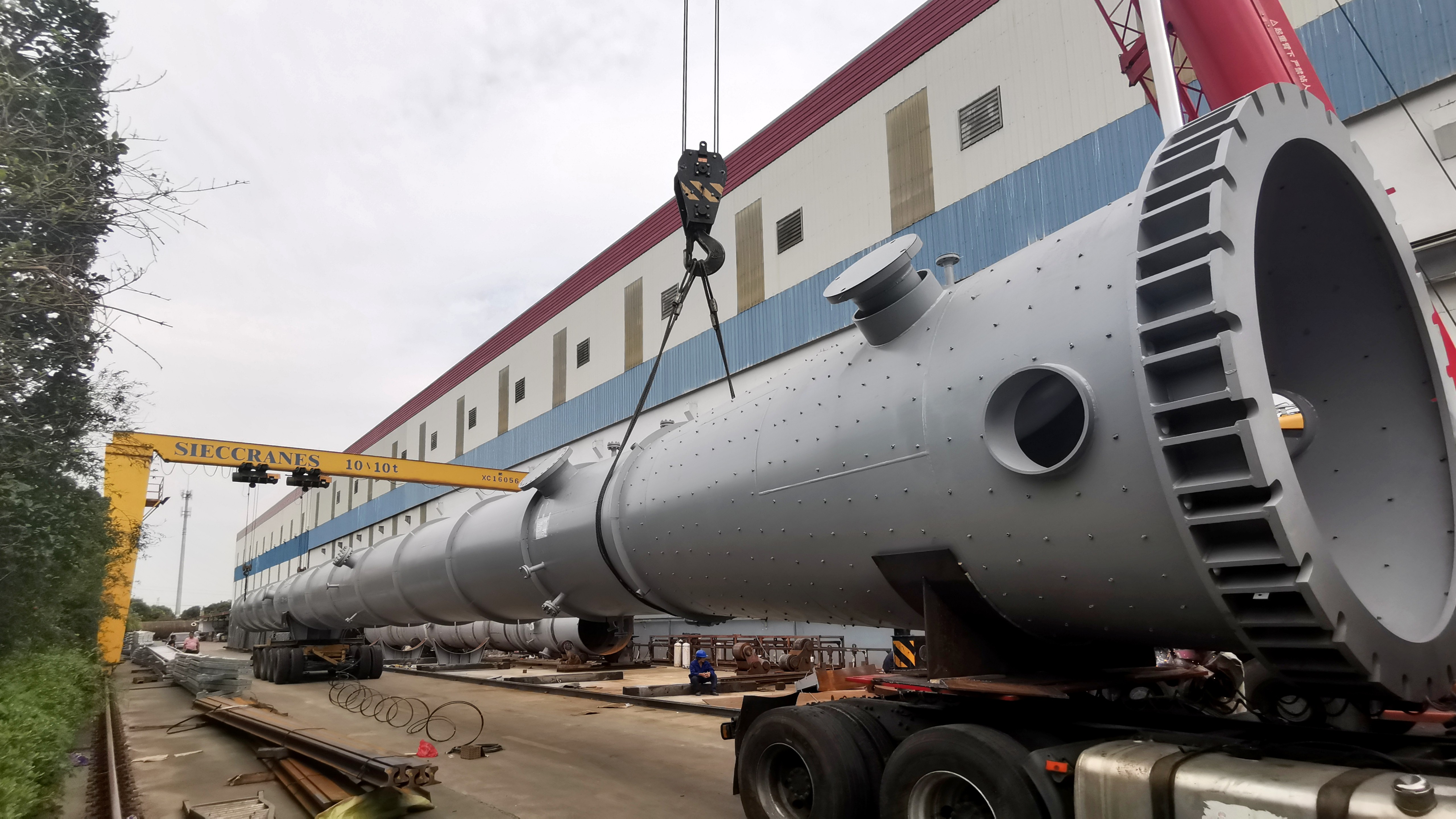 本次合盛硅業(yè)超大超長容器的成功交付彰顯了美克斯機械公司承接大型設(shè)備的制造能力和優(yōu)質(zhì)的服務(wù)水平。美克斯機械公司是一家集設(shè)計、制造于一體的重裝備企業(yè),占地面積4萬平方米,現(xiàn)有員工近180人,大型先進設(shè)備多達上百臺(套),隨著廠區(qū)正在建設(shè)的500T碼頭的投入使用,必將為公司實現(xiàn)最終愿景而添力。